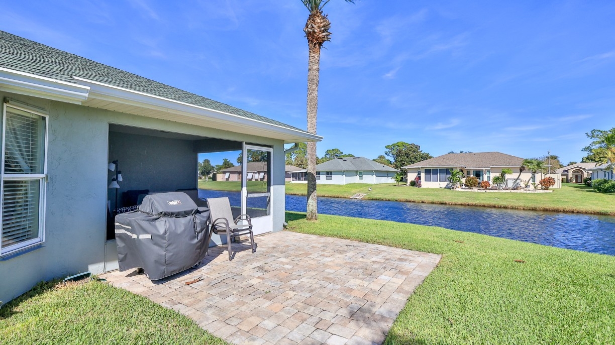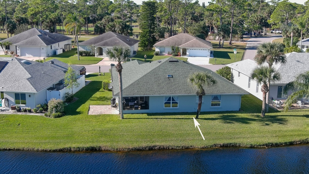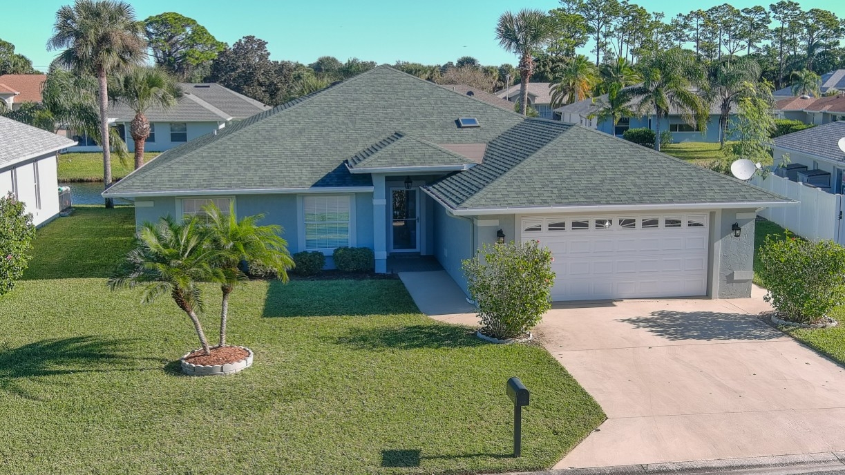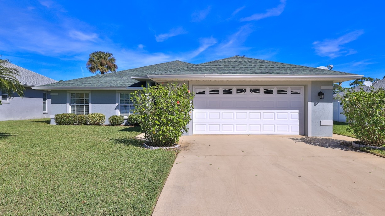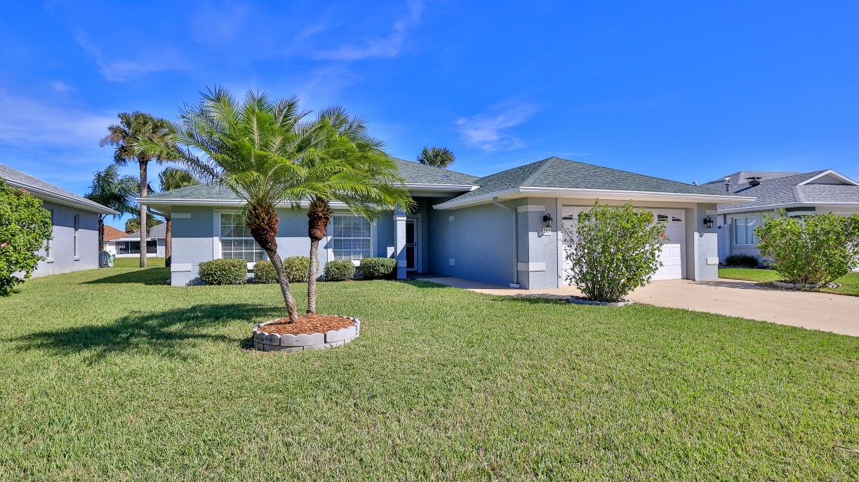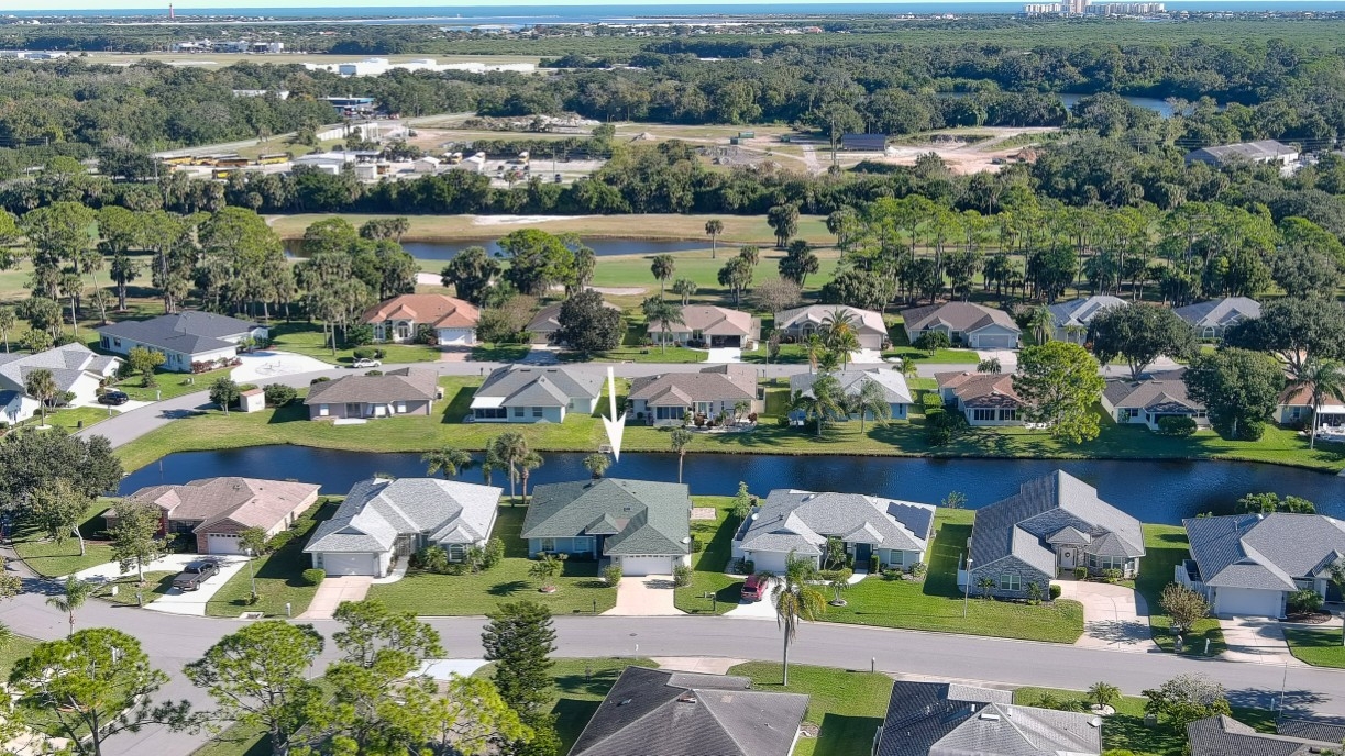 UPGRADED HOME with Granite Kitchen Counter top and Carpet 2018. This spacious 3BR/2BA/2Car Garage concrete block home has 2,252 sq ft of living space, is custom built, and owners have taken great care of the home, with No pets, No smoking, and No little ones. Make it yours! Located on quiet pond in Fairgreen Golf Community. Enjoy the cool breeze off the rear waterfront screened porch, as you watch the antics of waterfowl, turtles and the occasional otter. Rear of home faces east for sunrises and cool outdoor living throughout the day on 12 X 12.4 Screened Porch that is under the main roof of the home or catch some rays on the side paver patio. Open floor plan soars with vaulted ceiling, plant shelves, skylight, and No Popcorn Ceilings. Roomy dining room features large bay window and lots of light. Spacious kitchen offers pull-out shelving in cabinets, as well as storage drawers. Large A/C laundry room with scrub sink offers wonderful pantry and is part of huge 235 SF Hobby Room, or use it as your Home Office, Man Cave or even a 4th Bedroom for the grandkids when they visit. Newer A/C system, 2017 architectural shingle roof, storm shutters, New Tankless Water Heater, and Kitchen Appliances. Windows have all had glass replaced with Double-Pane glass in 2022. New Tile Flooring in Living Room and Primary Bedroom that features His & Hers Walk-In closets with custom shelving components and ensuite bath features twin sinks and large roll-in shower with built-in seat. Spacious guest bedrooms have great storage, one of them a large walk-in closet. Spacious Guest Bathroom has 36-inch doorway for easy access using walker or wheelchair. Enjoy natural gas stove top cooking and Tankless Water Heater, and central heat has gas hookup, if you wish to go that way.Move-in-ready home is nestled between 2 golf courses, centrally located and close to shopping, dining and only 8 minutes to the beach. Both golf course restaurants are accessible on your golf cart, in this Golf-Cart-Friendly Community. Heated Community Pool available by optional membership in Fairgreen Pool Association. Seller offering Membership Pool Certificate outside of closing. Wonderful neighborhood, great for walking, jogging or riding your bike. Yearly HOA dues of $350 provide you with maintenance and operation of the irrigation system, well water for sprinklers, as well as common area maintenance. Home offered Unfurnished, but most furnishings are available and negotiable. Home not affected by Hurricane Ian - home, yard and street weathered that 1000-year event nice and dry.