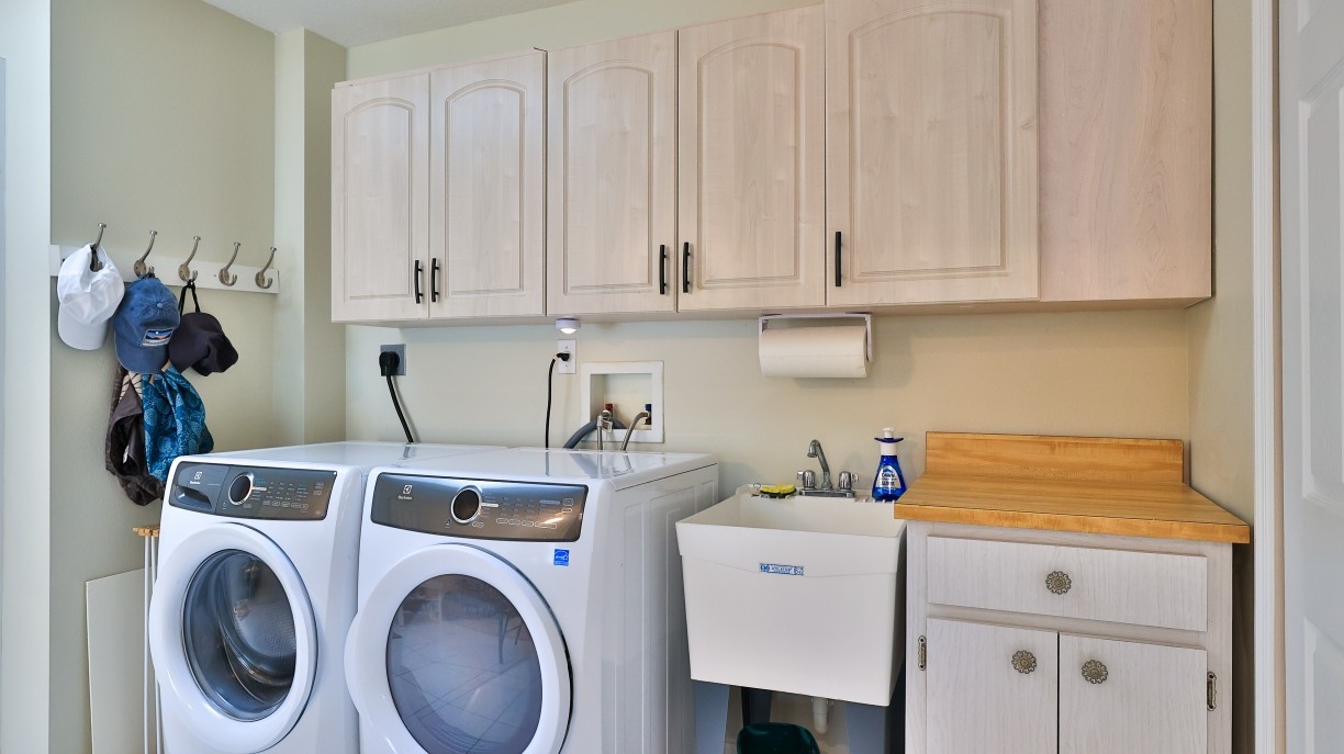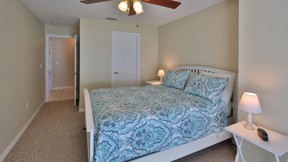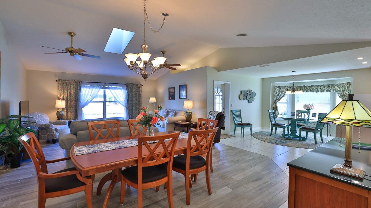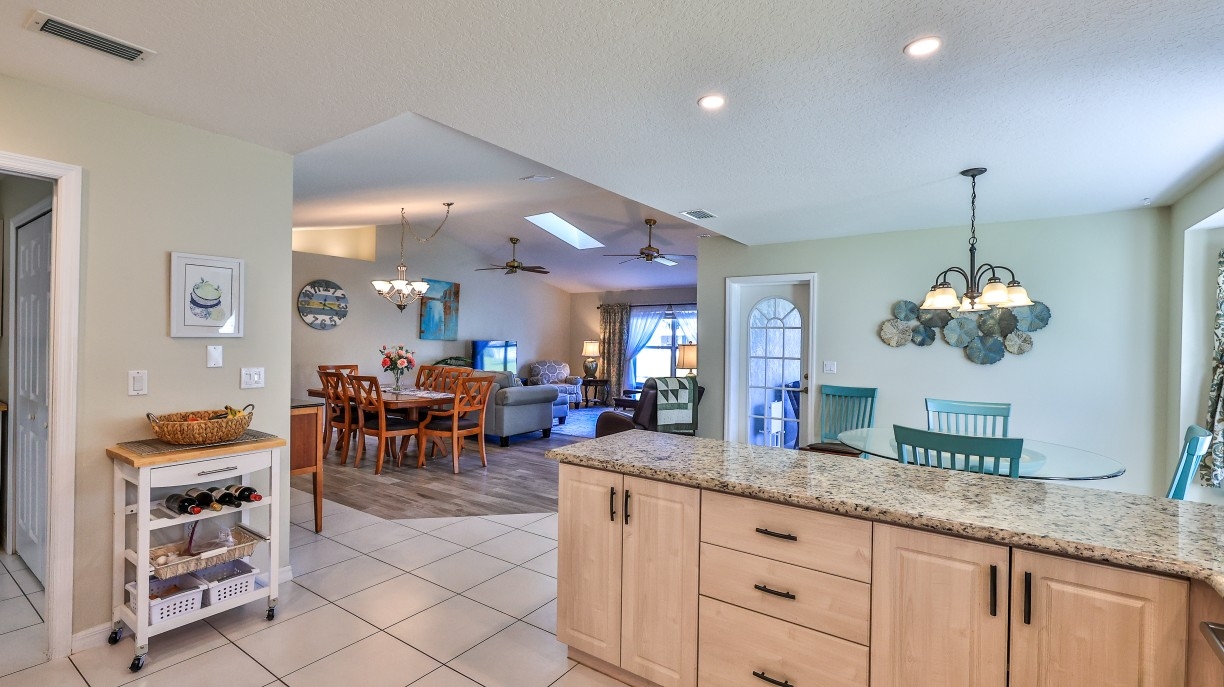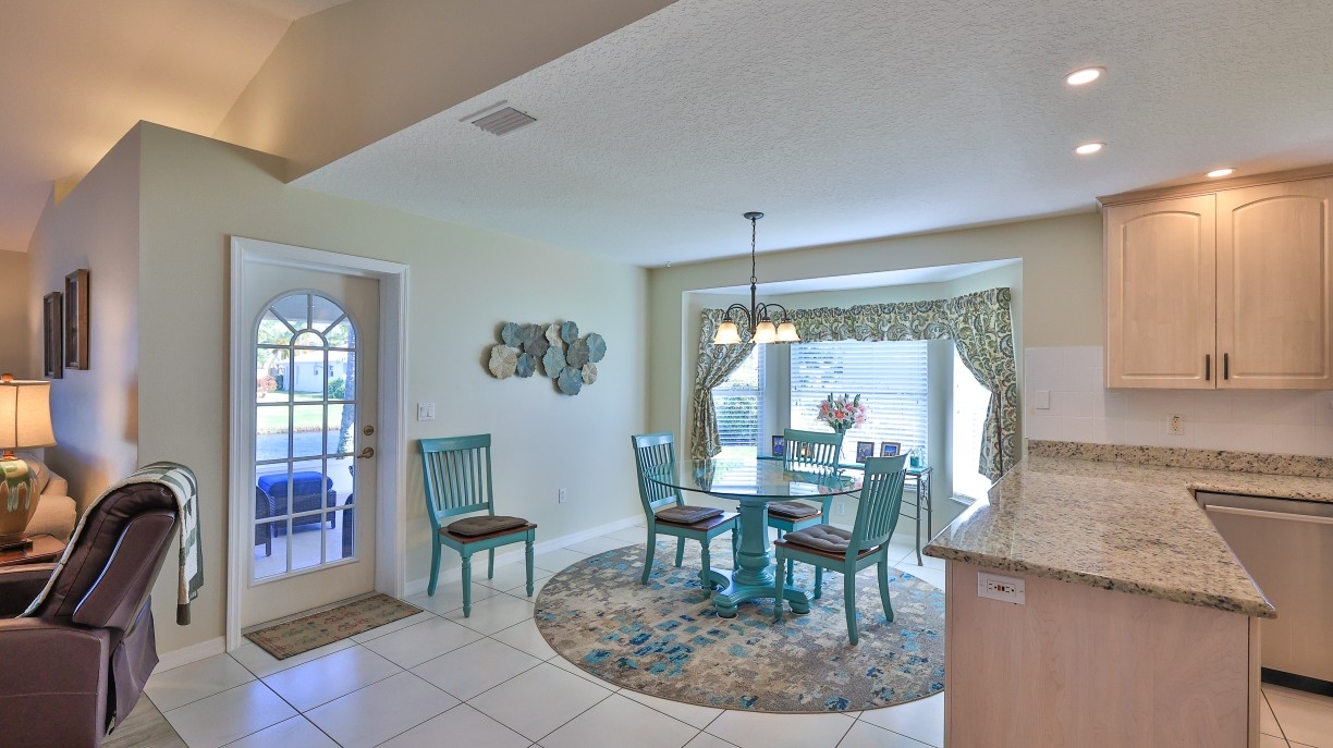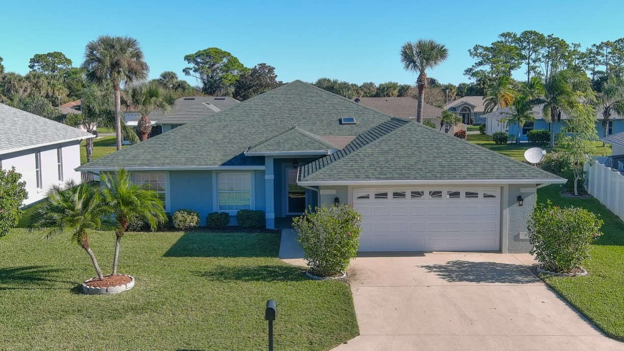 UPGRADED HOME with Granite Kitchen Counter top and Carpet 2018. This spacious 3BR/2BA/2Car Garage concrete block home has 2,252 sq ft of living space, is custom built, and owners have taken great care of the home, with No pets, No smoking, and No little ones. Make it yours! Located on quiet pond in Fairgreen Golf Community. Enjoy the cool breeze off the rear waterfront screened porch, as you watch the antics of waterfowl, turtles and the occasional otter. Rear of home faces east for sunrises and cool outdoor living throughout the day on 12 X 12.4 Screened Porch that is under the main roof of the home or catch some rays on the side paver patio. Open floor plan soars with vaulted ceiling, plant shelves, skylight, and No Popcorn Ceilings. Roomy dining room features large bay window and lots of light. Spacious kitchen offers pull-out shelving in cabinets, as well as storage drawers. Large A/C laundry room with scrub sink offers wonderful pantry and is part of huge 235 SF Hobby Room, or use it as your Home Office, Man Cave or even a 4th Bedroom for the grandkids when they visit. Newer A/C system, 2017 architectural shingle roof, storm shutters, New Tankless Water Heater, and Kitchen Appliances. Windows have all had glass replaced with Double-Pane glass in 2022. New Tile Flooring in Living Room and Primary Bedroom that features His & Hers Walk-In closets with custom shelving components and ensuite bath features twin sinks and large roll-in shower with built-in seat. Spacious guest bedrooms have great storage, one of them a large walk-in closet. Spacious Guest Bathroom has 36-inch doorway for easy access using walker or wheelchair. Enjoy natural gas stove top cooking and Tankless Water Heater, and central heat has gas hookup, if you wish to go that way.Move-in-ready home is nestled between 2 golf courses, centrally located and close to shopping, dining and only 8 minutes to the beach. Both golf course restaurants are accessible on your golf cart, in this Golf-Cart-Friendly Community. Heated Community Pool available by optional membership in Fairgreen Pool Association. Seller offering Membership Pool Certificate outside of closing. Wonderful neighborhood, great for walking, jogging or riding your bike. Yearly HOA dues of $350 provide you with maintenance and operation of the irrigation system, well water for sprinklers, as well as common area maintenance. Home offered Unfurnished, but most furnishings are available and negotiable. Home not affected by Hurricane Ian - home, yard and street weathered that 1000-year event nice and dry.