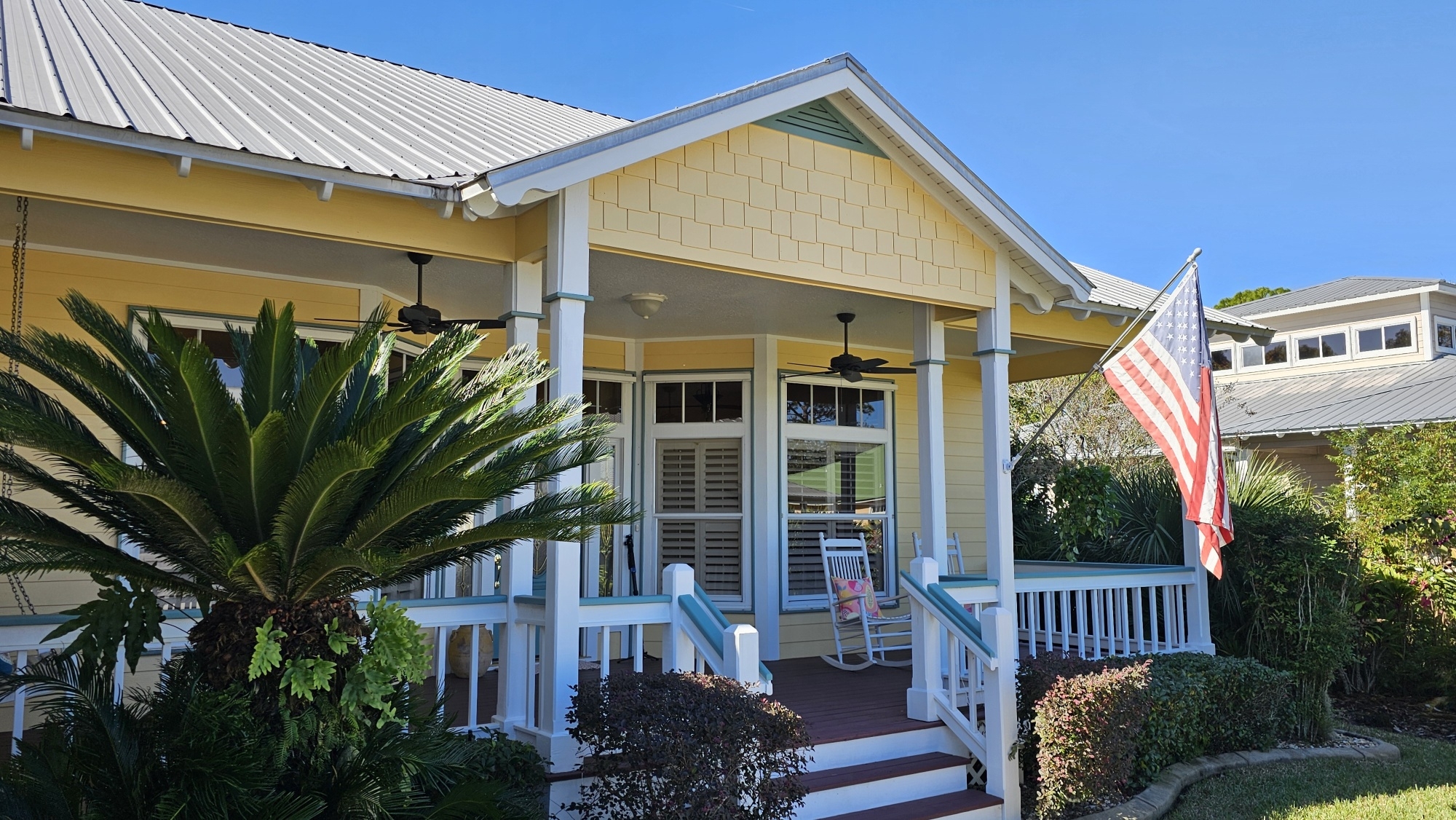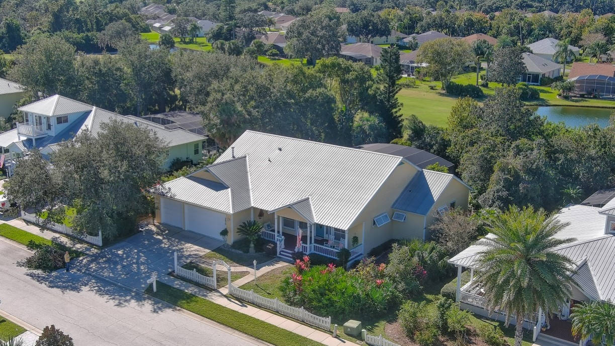 | Welcome to Osprey Cove, your secluded little corner of the world, where you are taken away to a small, old Florida village that feels very much like Key West, with the laid back, Florida lifestyle you have envisioned, but found difficult to find. Behind the gated entry, this small community of "Florida Cracker" style homes built by renowned local builder Mike Hickson, provides a placid and quaint environment where neighbors enjoy the cool breezes off of Turnbull Bay on Hickson's signature front porches, situated behind picket fences. Located within Turnbull Estates, this home fronts on the fairways of the Preserve on Turnbull Bay golf course, a challenging 18-hole 72,660-yard course that runs through a nature preserve. The course also offers 15 Covered Hitting Bays with Toptracer Range Technology on its driving range. The home enjoys lush landscaping and vegetation in it back yard, providing privacy, with a partial view of the fairways, that can be opened up if desired. The front porch is a welcoming feature to the home, with its old-fashioned swing and rockers that is a throwback to a kinder, gentler and slower lifestyle. As you enter the home, your eyes immediately are drawn to the gorgeous lanai and pool that will be the family's favorite space to relax and enjoy the outdoors in the screened in area, surrounded by lush landscaping, with peeks of the fairways. The heated, saltwater pool has access to a pool bathroom, for your convenience. The open floor plan overlooks the pool, with the kitchen overlooking the living area and cozy breakfast nook. The entry is flanked by a formal, yet open dining room, and a spacious den that provides flexible space for use as your private office area, music room, library, or just a quiet space away from this family home's open spaces. The primary bedroom suite is a spacious retreat with ensuite bath that features twin vanities, soaking tub, separate shower and large walk-in closet. The split-bedroom plan places the guest bedrooms on the opposite end of the home for privacy and peace and quiet. An oversized 3 Car Garage provides you lots of storage space and shelter for your vehicles. The exterior of the home features Hardie Board concrete siding for ease of maintenance, a metal roof and sprinkler system. Enjoy the Florida Coastal Lifestyle in this unique gated neighborhood, that is minutes from all that New Smyrna Beach offers, with its many restaurants, boutiques, antique shops and galleries in its Historic Canal Street District and Flagler Avenue's Beachside Historical District. The beach is a short 15 minute drive, with access to the ocean from the Intracoastal Waterway. Enjoy small town living in Florida's most inviting and rewarding place to live, New Smyrna Beach! |